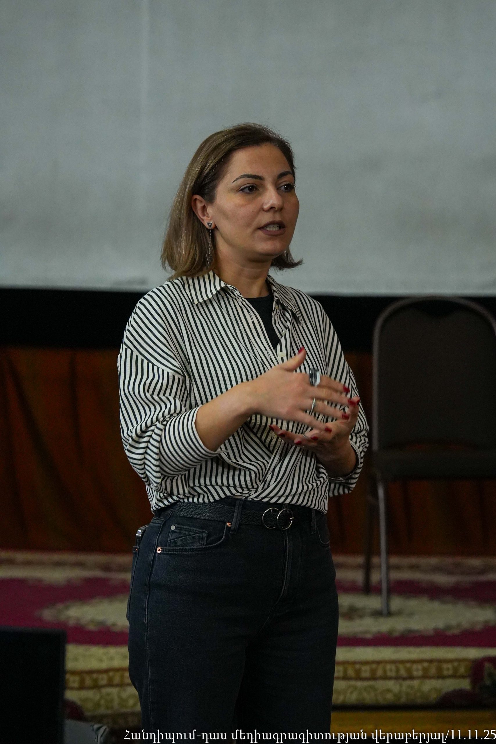 Ապա գրադարանավարների հետ հանդիպել է լրագրող Նելլի Ռաֆայելյանը, ով կիսվել է իր մասնագիտական փորձառությամբ, պատմել Մեդիա նախաձեռնությունների կենտրոնի կատարած այն աշխատանքի մասին, որը միտված է մեդիագրագիտության տարածմանը, զարգացմանը։